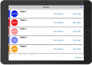 Each user tracks specific teams – but you can log on with the same user from multiple devices. When you log onto a new device with the same user credentials, the team, roster and competitor teams are automatically downloaded to the other device (can be Android or iOS).