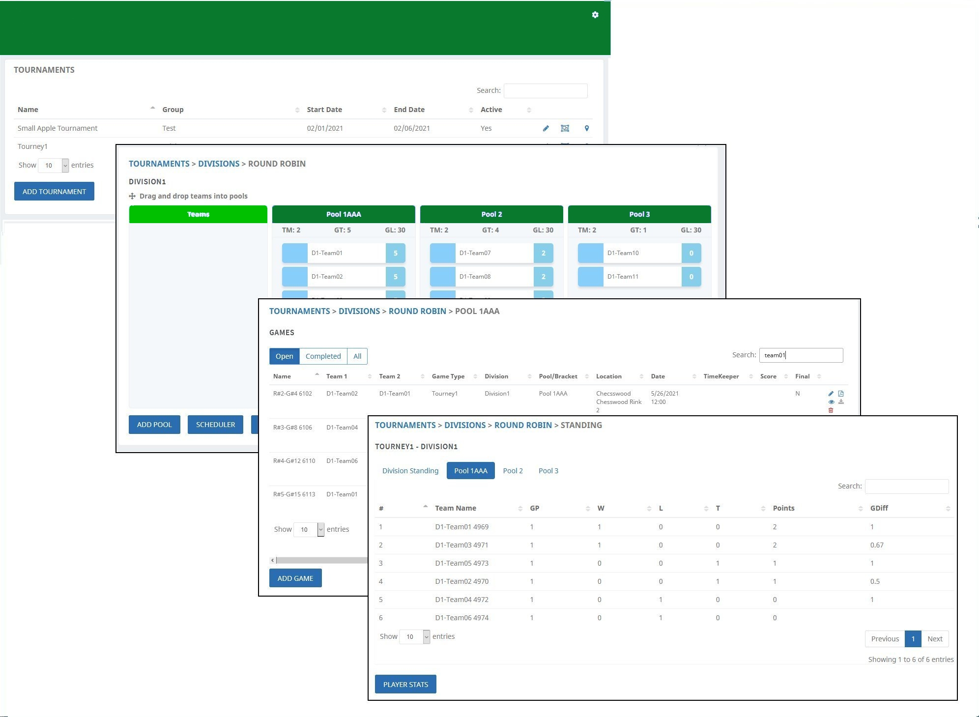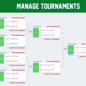 - Use our drag-n-drop scheduler to assign games to Venues + Time slots